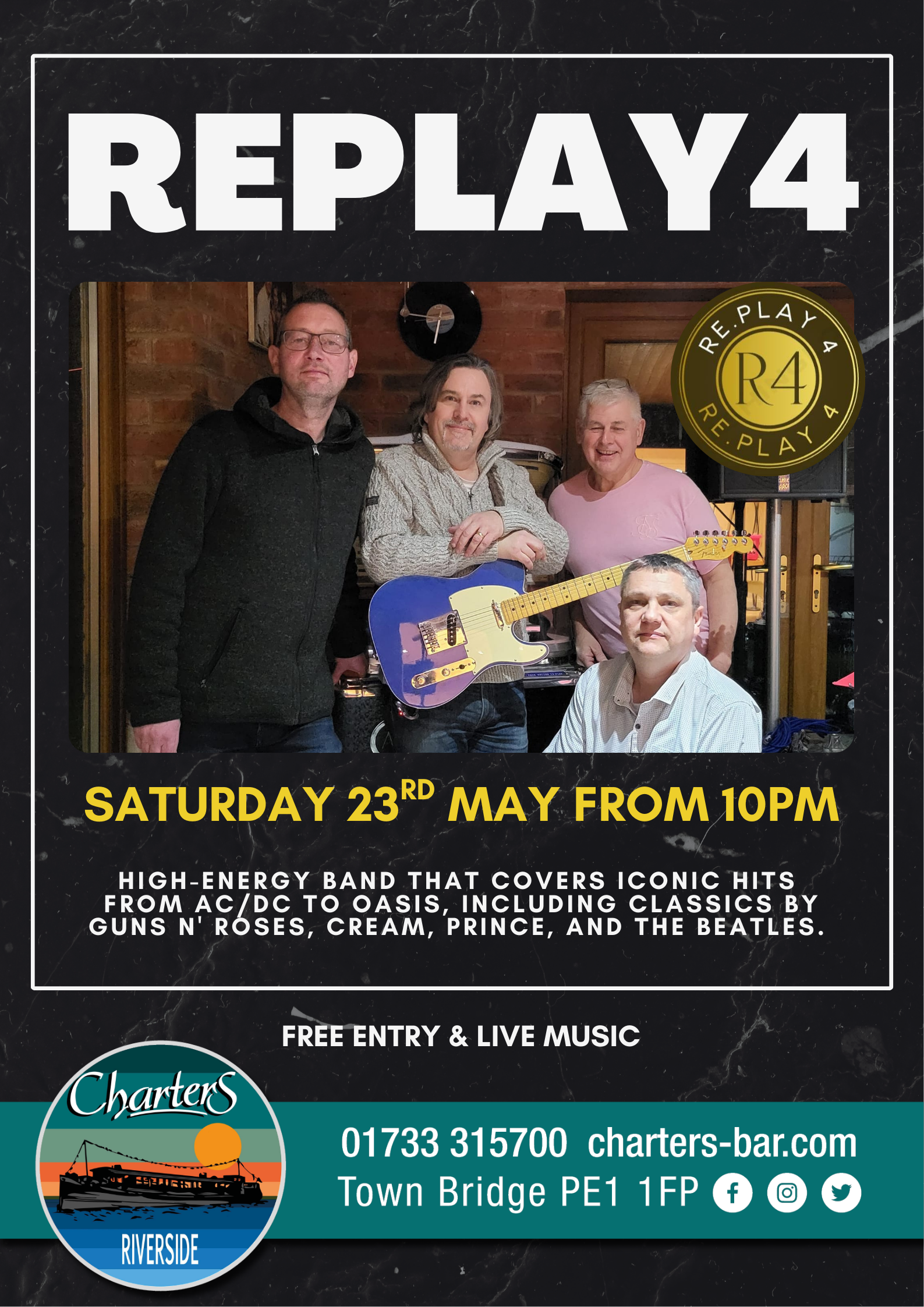 LIVE MUSIC & FREE ENTRY from 10pm Replay4 is a high-energy band that covers iconic hits from AC/DC to Oasis,…